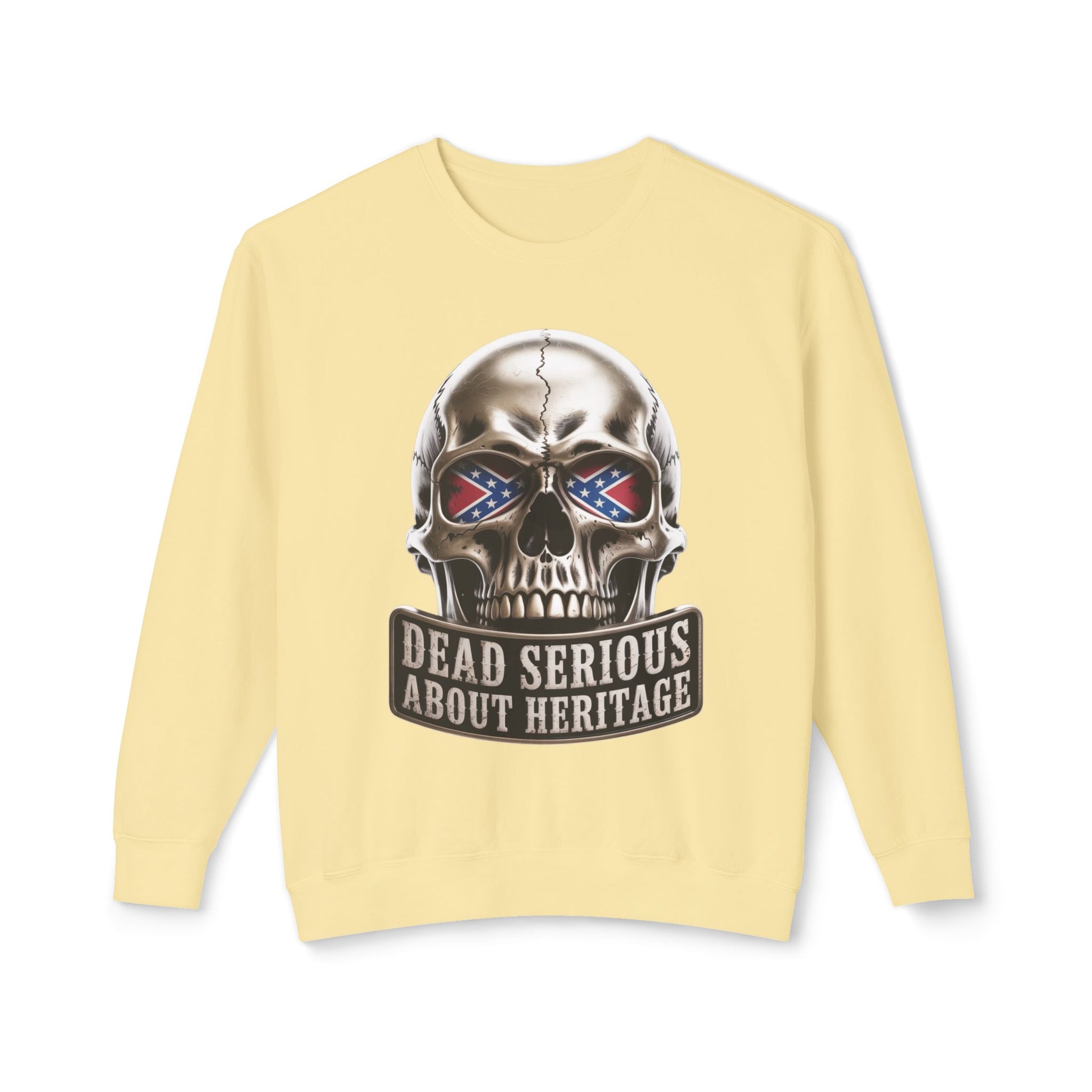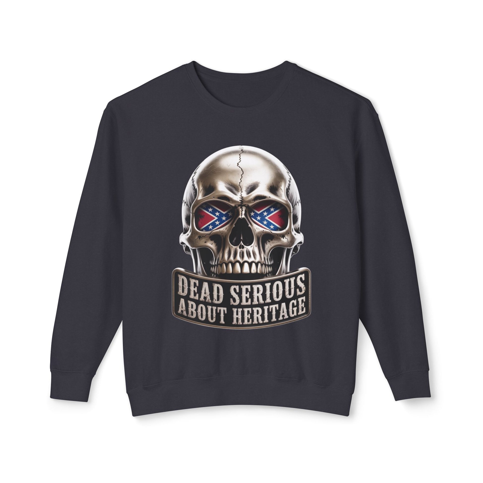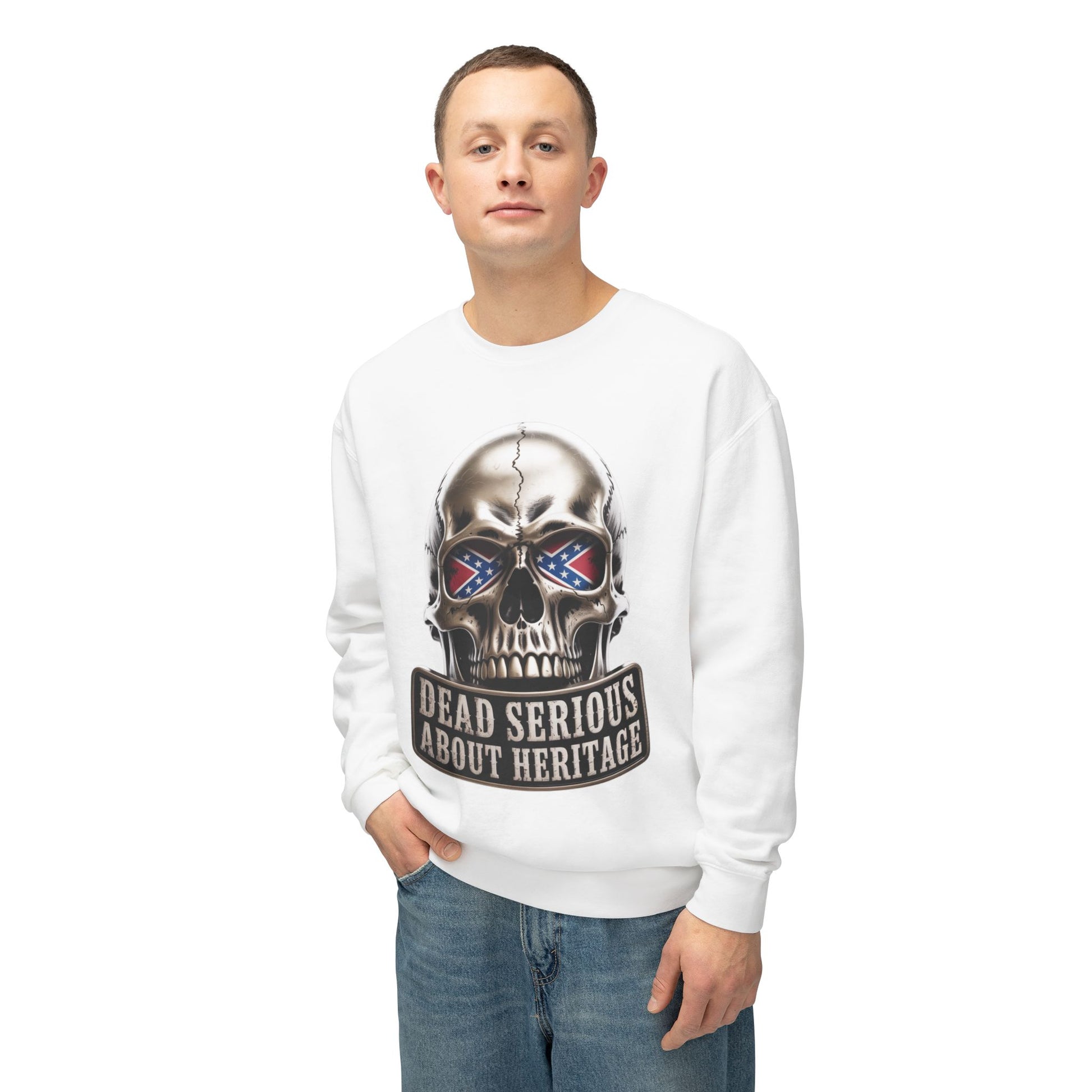 Crewneck Sweatshirt — 'Dead Serious About Heritage' Skull Design